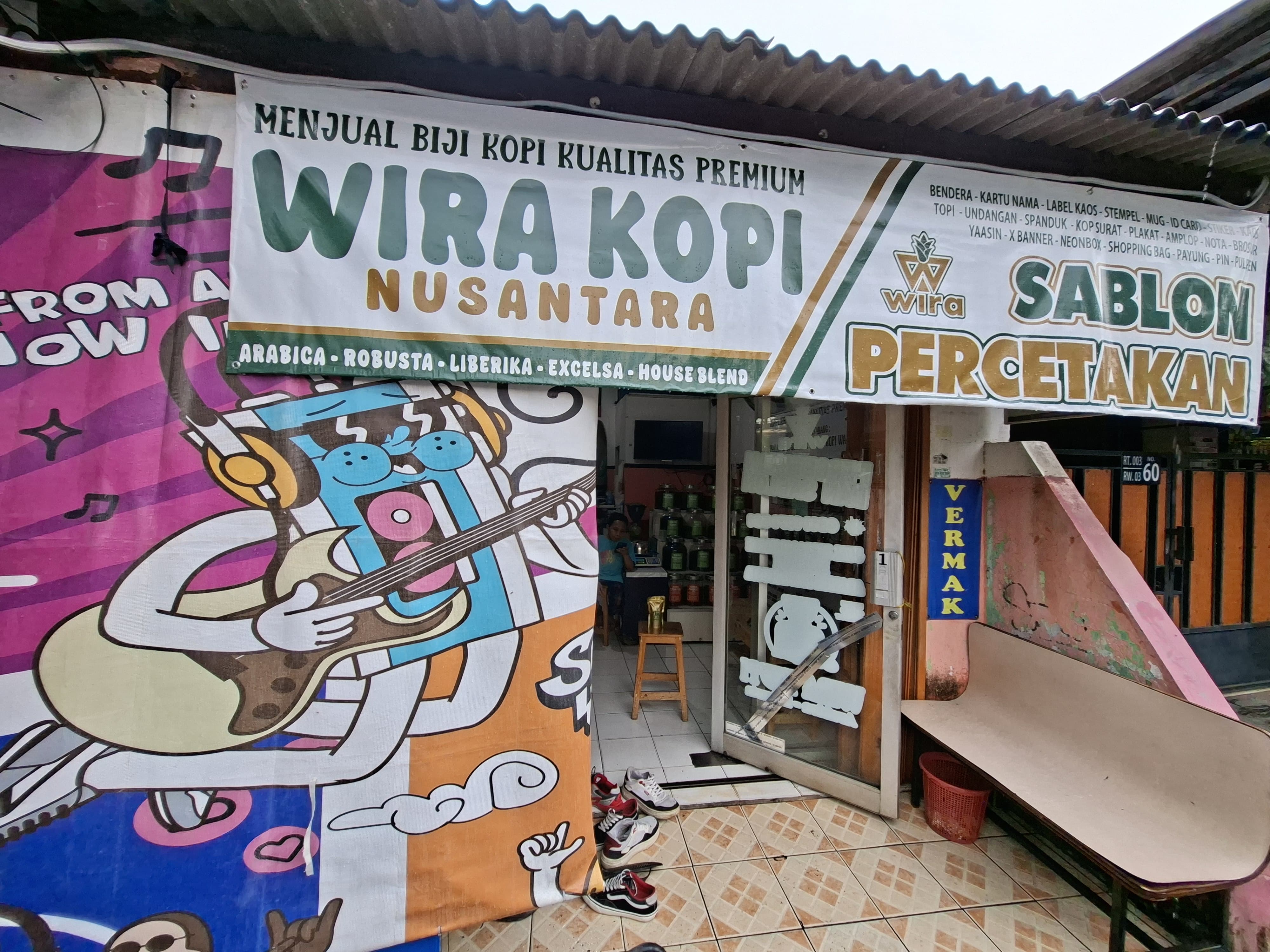 Anwar, pemilik Wira Kopi ini menjual biji kopi nusantara tak hanya ikhtiar untuk jalan rezekinya namun sekaligus mengedukasi masyarakat tentang kopi asli Indonesia.